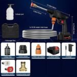 - Includes 5 meters outlet hose pipe, 48V (2pcs)Battery, spray gun extension rod, inlet filter, inlet connector, bucket water filter, foam spray bottle.